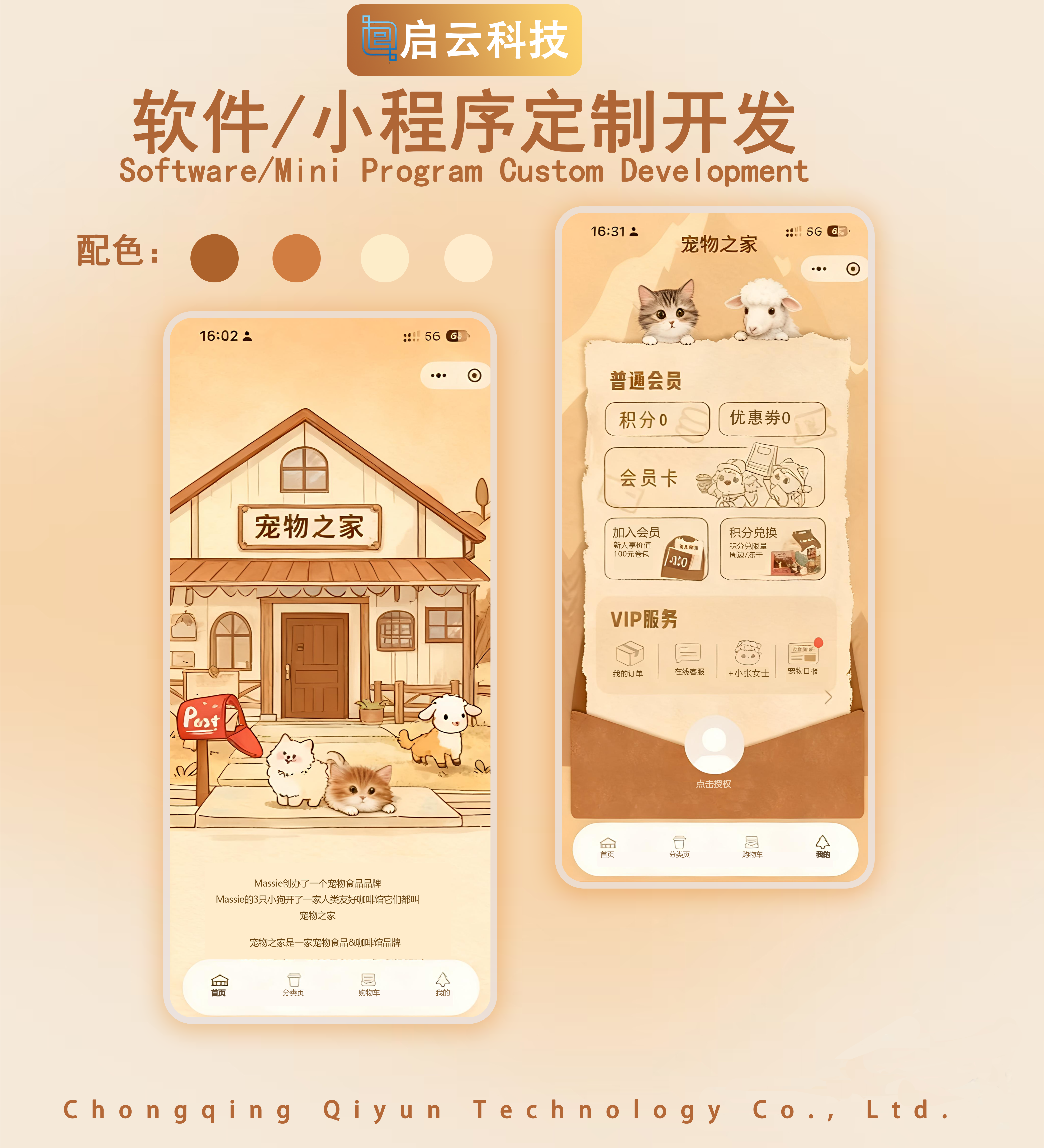 宠物主题综合性服务小程序,以温馨治愈的田园风格为视觉基调,聚焦宠物主的日常管理、消费与社交需求,打造「一站式宠物生活服务平台」,适配微信生态的轻量便捷特性,覆盖养宠全场景。